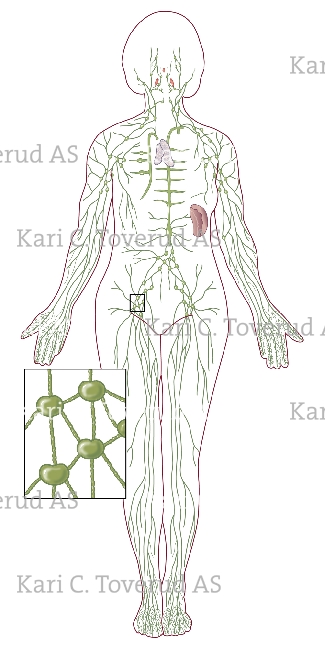 The lymphatic system in a female with an enlarged area with lymph nodes