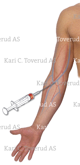 - Blood sample from a vein in the right armBlood sample from a vein in the...