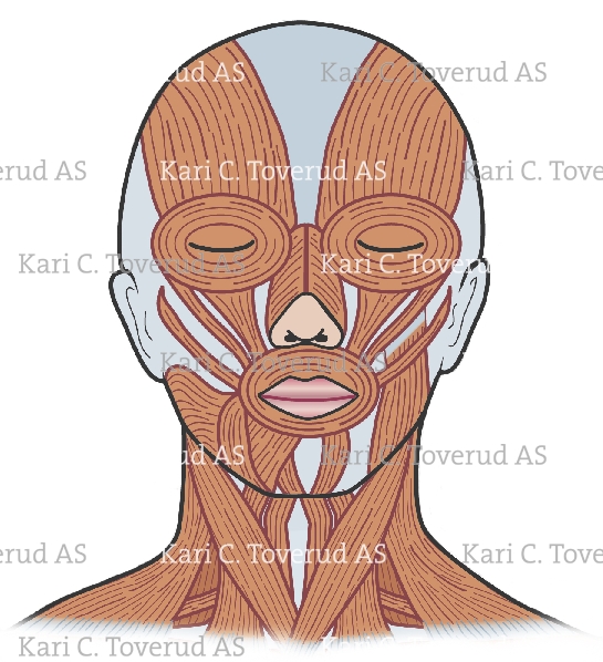 Anterior view of the face showing the superficial muscles